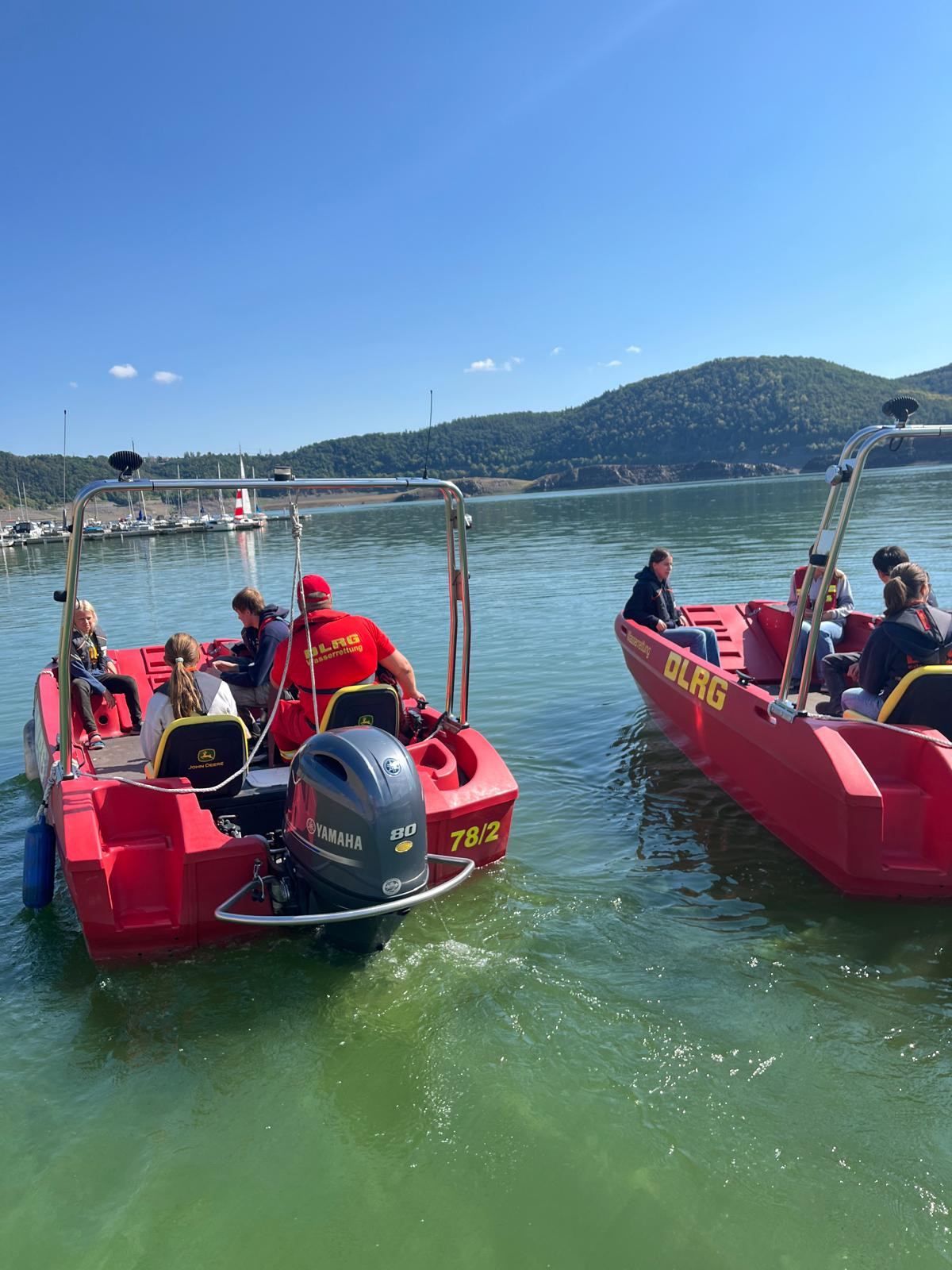 Zur Abwechslung konnten die Jugendlichen anschließend in Gruppen auf dem DLRG Boot mitfahren.
